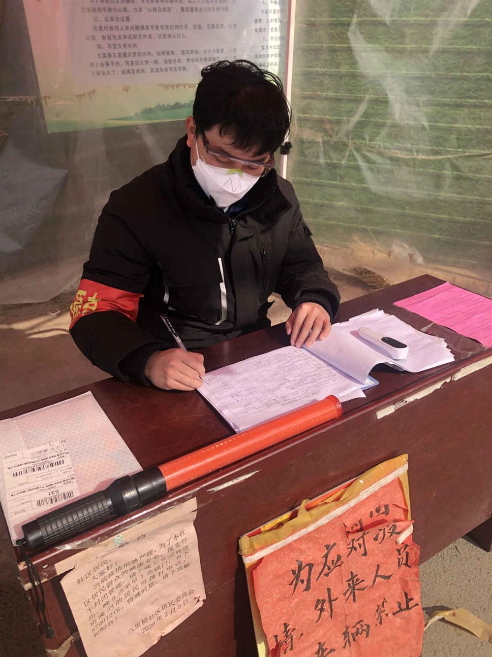 根據(jù)居委會安排,柴楠每天在社區(qū)出入口進(jìn)行詢問登記、測量體溫、疫情宣傳、人員排查等工作。2020年的第一場春雨給疫情防控工作帶來了更大的難題,他身披雨衣,在刺骨的寒風(fēng)和冰冷的細(xì)雨中一絲不茍的測體溫、查驗(yàn)身份證、做好信息登記…一忙就是整整一天。